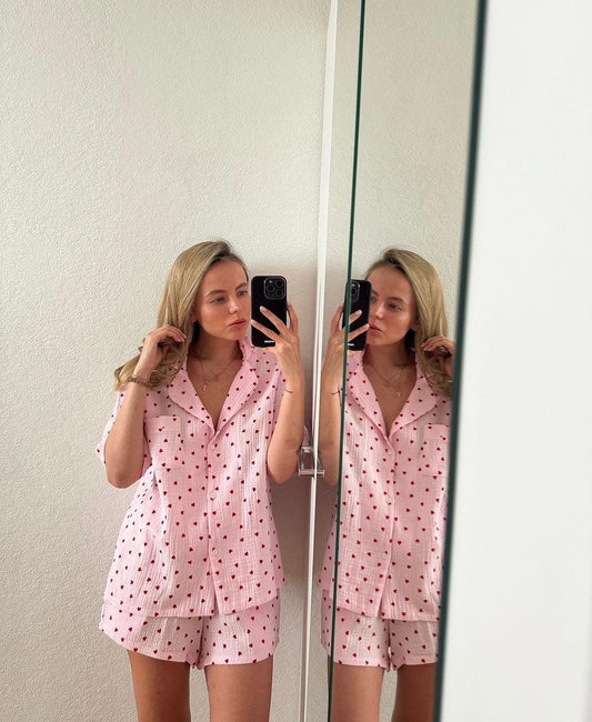 Cotton sleepwear Organic Cotton Set Crinkle cotton pajamas Bridal Bachelorette pajama set Muslin cotton loungewear Double gauze pink pajama
